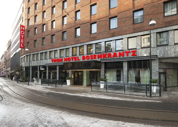 El Thon Hotel Rosenkrantz Oslo, de 4 estrellas, está localizado cerca del barrio de ocio de Oslo, a 1 km de la Ópera de Oslo. Los viajeros de negocios disfrutarán de comodidades como WiFi en zonas comunes, y de acceso a fotocopiadora y un escritorio.